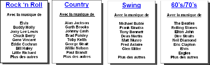 B) ROCK n ROLL with the music from the 1950’s Elvis Presley, Buddy Holly, Chuck Berry and many more